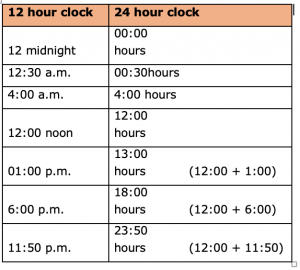 We normally use 12-hour clock system in which the hour hand of the clock moves clockwise (circular motion towards right) twice a day (24 hours). Some departments like railways, airlines, etc. use 24-hour clock system because they do not use a.m. and p.m.