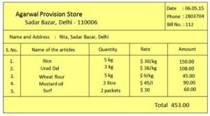 Example 1. Ria from Sarad Bazar Delhi – 110006 bought the following items from Agarwal Provisions Store Sadar Bazar Delhi – 110006 on 06.05.2015.
