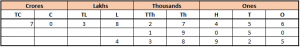 Solution: Let us arrange the digits in Indian place value chart as follows and then simply write them using the grouping of periods and the respective location of each digit in a group.